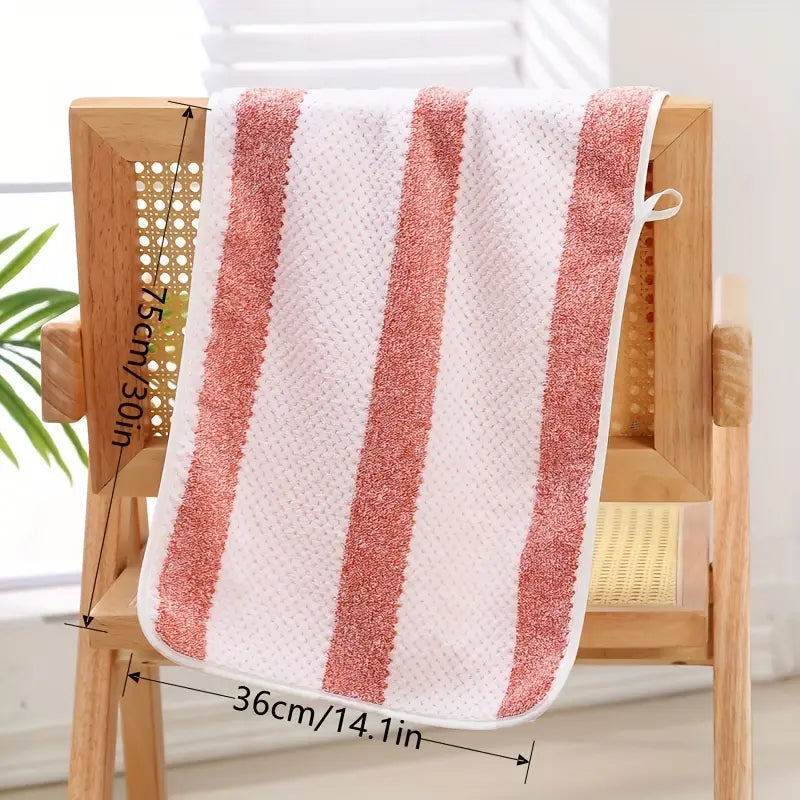 Experience the ultimate in comfort and style with our Striped Coral Fleece Towel. This towel is not just a necessity; it’s a luxurious addition to your daily routine. Crafted from high-quality coral fleece, it promises exceptional absorbency while being fade resistant, ensuring that it remains vibrant wash after wash.